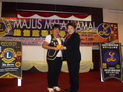 Presidents of Lions & Lioness Clubs presented the donations of RM1000 each to Pasukan Sukarela Bomba, Pasukan Pengegahan & Kawalan Danggi Simpang Rengam, Guan Zhi Zai & Yong Peng Renal Centre.